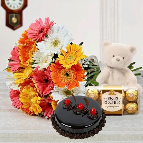 In today's fast-paced world, finding the perfect gift that conveys your emotions can be challenging. Whether it is a birthday, anniversary, or just a special day, sending a thoughtful gift that speaks from the heart is essential. Gifts are a thoughtful way to convey love, sympathy, gratitude, care, warm greetings, best wishes, and heartfelt compassion, allowing you to beautifully express your emotions and sentiments. And what could be better than a combination of delicious cake and beautiful flowers? At SendOnlineCake, we offer a wide range of Cake and Flower Combos, perfect for delighting your friends, family, and loved ones on any occasion. Once you have placed your order for cakes and flowers online, you can take advantage of our convenient delivery options, including same-day delivery, midnight delivery, and even express 3-hour delivery for those last-minute celebrations. With our guaranteed online flowers and cake delivery, you can send your best wishes from the comfort of your home to anybody, anywhere.
