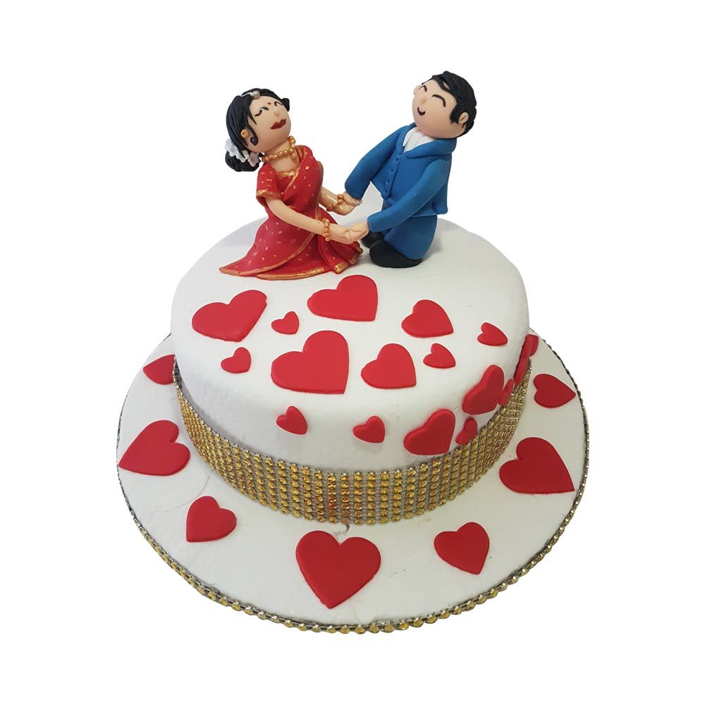 Our Cute Couple Cake is a captivating confection that beautifully showcases the love and joy of a newly married couple, elegantly displayed on top. This cake is a true representation of the celebration of love, featuring layers of moist sponge and a medley of exquisite fillings. Every bite is a testament to the sweet journey of love and the promise of a beautiful shared future. Whether it is a wedding reception, an anniversary, or a special celebration, this couple cake is a perfect choice to make your moment even more special. Buy Couple Cake Online and celebrate your love story and the promise of a beautiful life ahead with our beautifully designed Cake.
